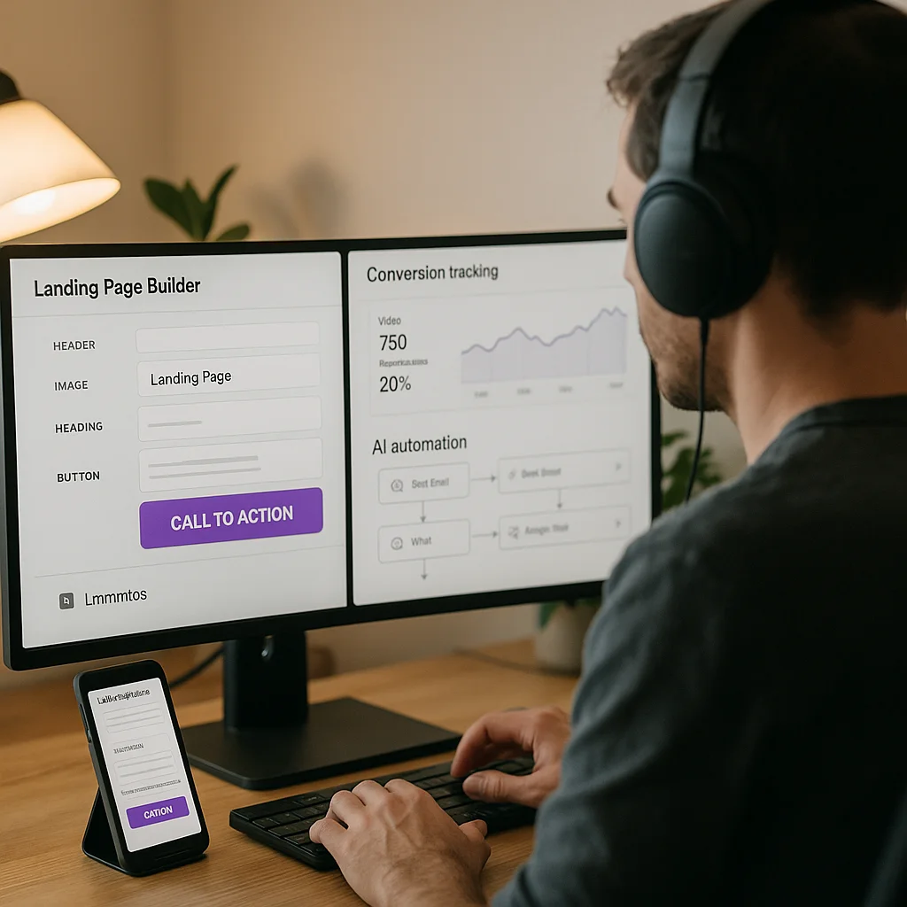 Embudo de ventas, landing page, automatización con IA y campañas de captación durante el proyecto.